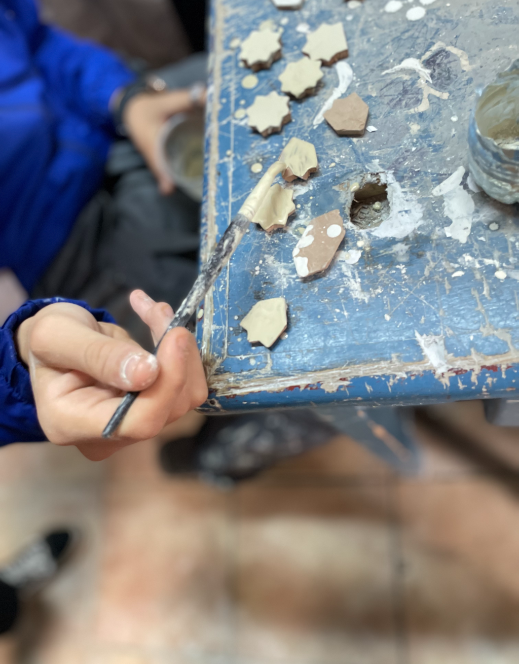 La période des dynasties royales, Saâdienne et Alaouite, apporta des développements significatifs. Les cours furent des mécènes encourageant les artisans à créer des pièces luxueuses pour les palais, mosquées et zaouïas. Les zelliges, carreaux de céramique émaillée assemblés en motifs géométriques complexes, furent largement utilisés dans l’architecture et la décoration, notamment à Fès et Tétouan, où l’École des Arts et Métiers illustre cette pratique. Les textiles de luxe comme la soie brodée et le velours devinrent aussi des marqueurs de statut social, une tradition encouragée sous les protectorats français et espagnol. Les artisans de Tétouan remportèrent d’ailleurs le grand prix de l’Exposition de Séville en 1929.